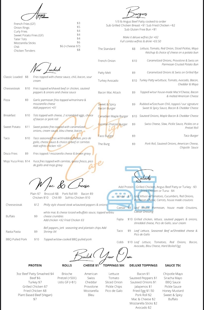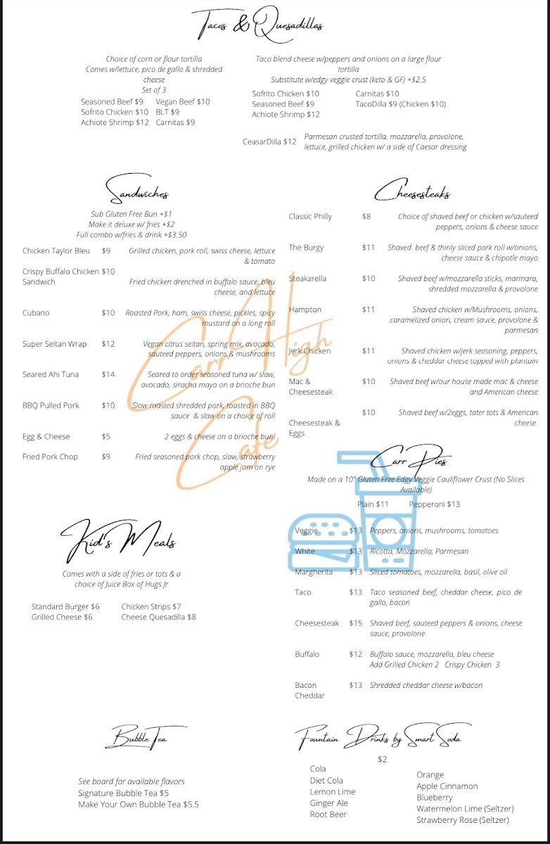 With such a wide selection, Carr High Cafe's menu offers something for everyone, from comfort food to bold, new flavor combinations. Whether you're stopping by for a quick snack or a full meal, there's no shortage of tasty options to explore at this local favorite.
